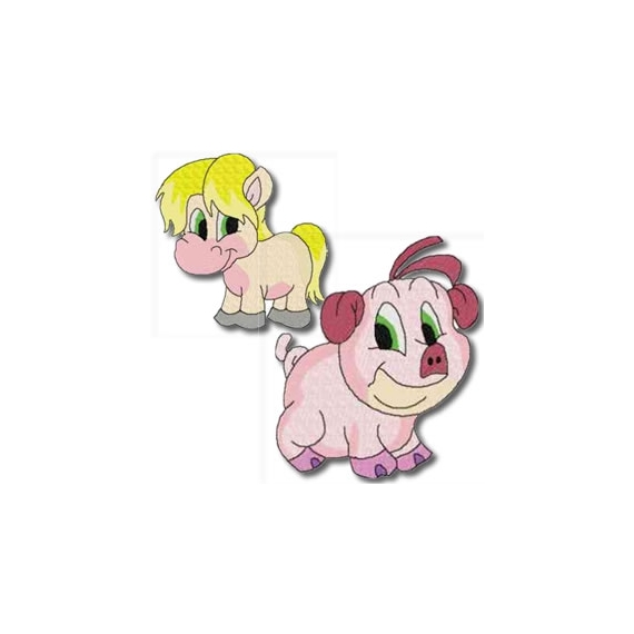 Large hoop cartoon farm animal designs. High quality, affordable and available in most embroidery machine formats at low cost ready download.