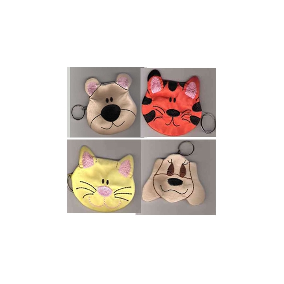 Zipped Animal Coin Bags Machine Embroidery Design Project