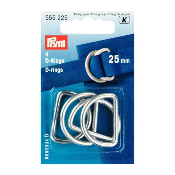 Premium quality as always by Prym. Standard size 25mm or 1 inch Drings, used for 1" webbing, strapping or smaller as a pivot. Unlike cheap alternative D-Rings which are often split, these steel ring are welded, so wont split, then finished, polished and chromed Silver.