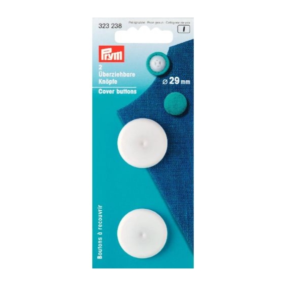 Premium quality as always by Prym. White plactic cover buttons from Prym are super easy to handle. The flexibility of the plastic realy reduced the resistance from the material making cover buttons with these is so simple and the finished product is superb. These 29mm cover buttons come in a pack of 2.