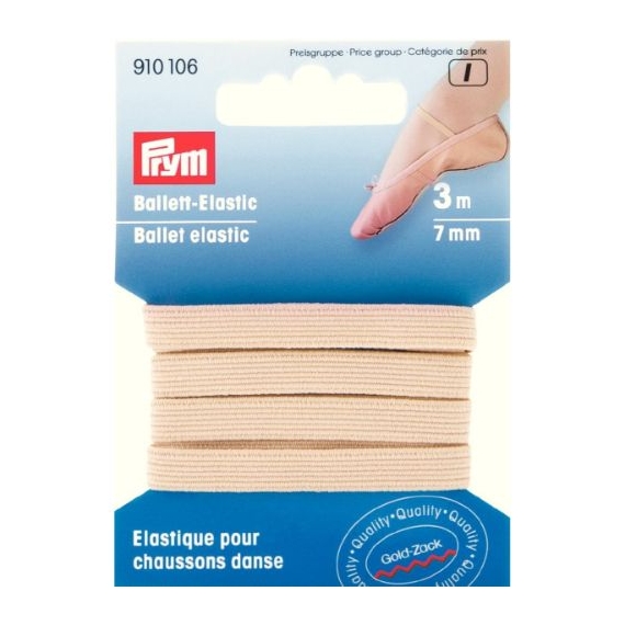 Premium quality as always by Prym. Amazing quality non-roll Ballet Elastic in beige. On this card their is 3 meters of 7mm wide elastic.