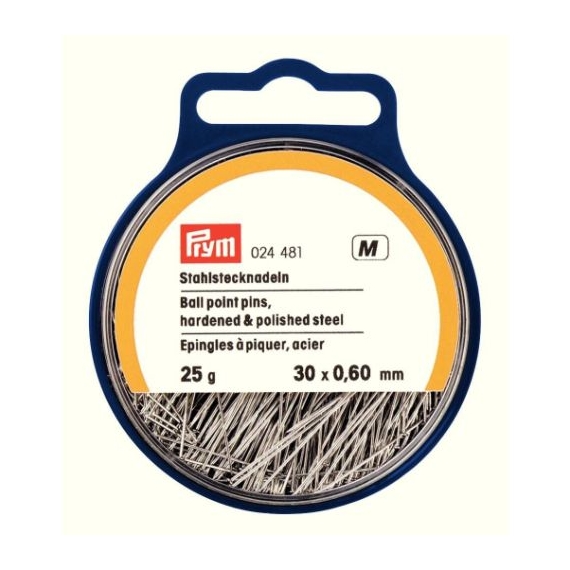 Premium quality as always by Prym. Ball point hardened and polished Stainless steel pins, Polished to a high finish. In a resealable prym container. Ball point pins are for use with knit, jersey and stretch materials.