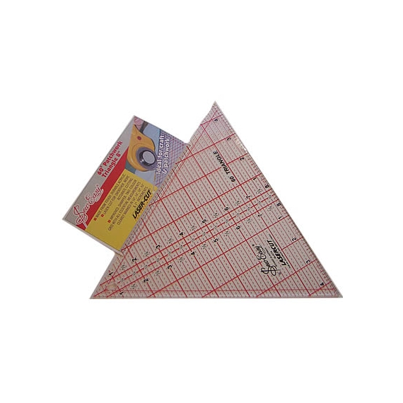 The perfect ruler for cutting equilateral triangles and 60 degree diamonds. Very popular for 6 pointed star designs ang pyramids. Ideal for cutting large diamonds and triangles cut from strips. Clear easy to read lines in 1/8" increments.
