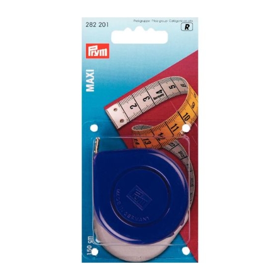 Premium quality as always by Prym. Spring loaded Maxi Tape measure extends up to 150cm and has many common traits that you would find in a standard DIY tape measure but fits comfortable in the palm of your hand. Fully spring retractable.