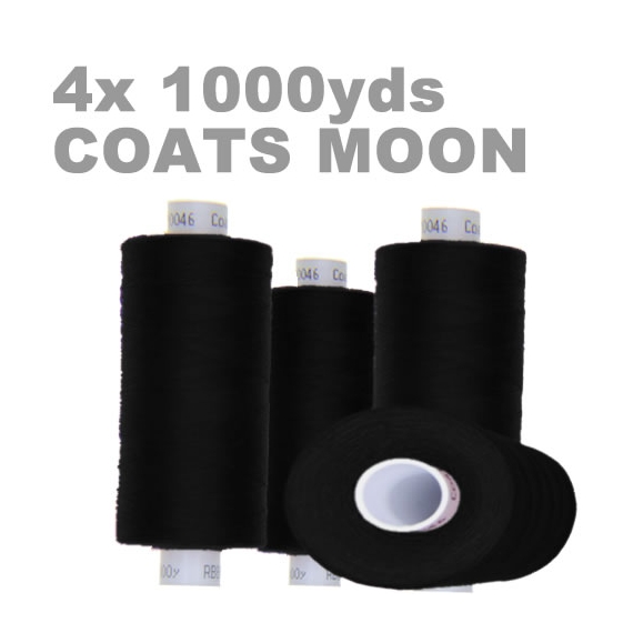 Coats moon thread is the best quality overlock thread on the market, these 1000 yard spools usually sell for £1.20 each but bought as a bundel of 4 you save over 20p on each spool. This bundle is for 4 x 1000yard spool of Black Coats Moon 120 spun polyester overlocking thread, perfect for any domestic overlock machine or sewing machine.