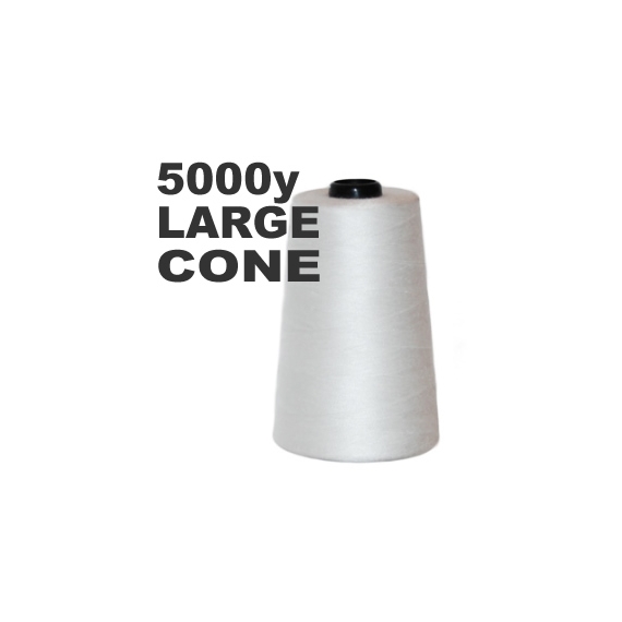 Exceptional value, this large 5000y white cone is an ideal overlocking thread or industrial sewing machine thread.