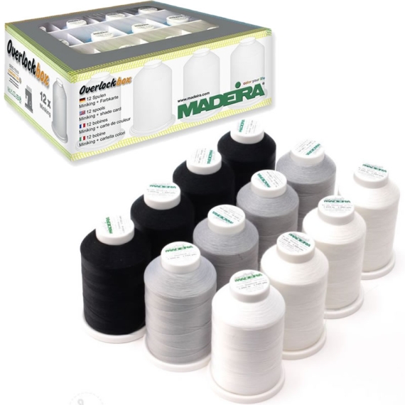 Madeira Aerolock Thread 12 Set Box Black and White