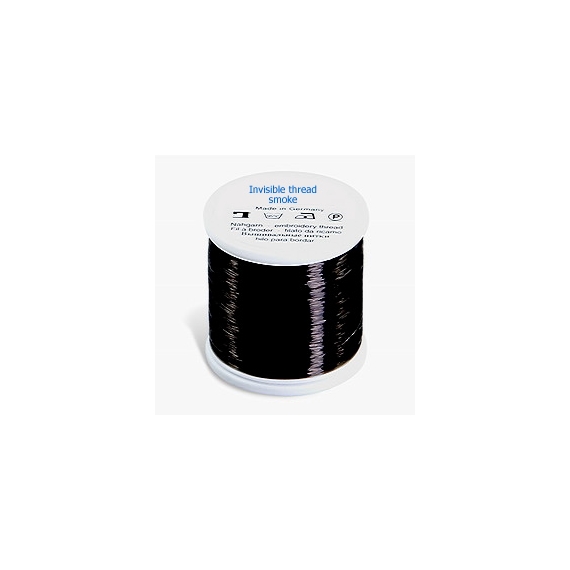 Large 200m smokey invisible thread reel and also used in the bobbin on a sewing machine or for use by hand for near transparent sewing on dark coloured fabrics.