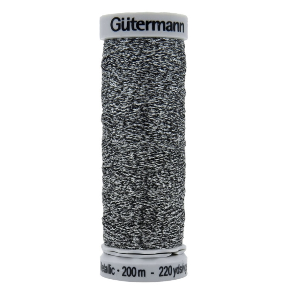 Gutermann Sulky Metallic Thread 200m, Shade Id: 7023. Colour: Black Silver