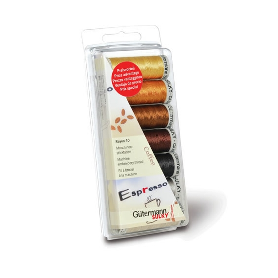Gutermann Sulky Rayon 40 Machine Embroidery Thread Multi Pack 7 Reels (Coffee)