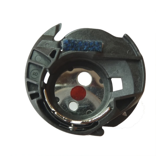 This is the original Brother black plastic bobbin holder to use when stitching embroidery. It is the red dot bobbin case for embroidery only. It is easily damaged when the needle causes a burr on the plastic edge.