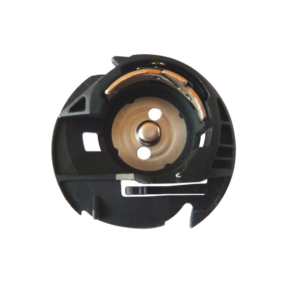 Suitable for Singer Futura XL400 sewing machine series. Sometimes called a bobbin case this black plastic part is located under the needle plate, it tensions the bobbin thread and holds the bobbin in position.