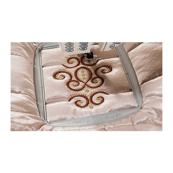 The Husqvarna Do-it-all Quilters Hoop has a embroidery area of 150 X 150mm or 6" x 6"