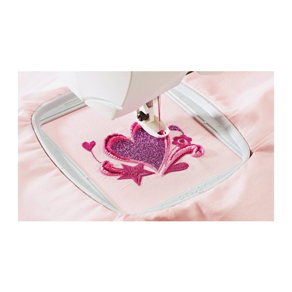 A nice sized hoop for embroideries small than 3" square. The exact sewing area is 80mm x 80mm. Used for initials or company logo's. It will fit in "tight" areas of your garments, often where larger hoops will not.