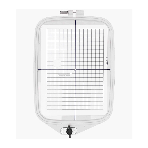Large hoop that comes with some Janome Memory Craft Embroidery machines. It has a maximum sewing area of 5.5 inches by 7.9 inches. It is the Janome Hoop B at 140mm x 200mm