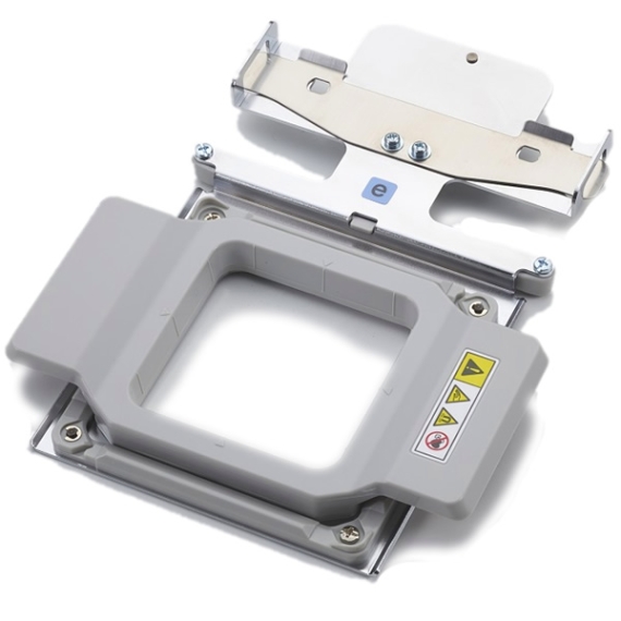 Simply place your garment on the metal base window then place the upper grey plastic frame directly on top. The magnets are located in the upper grey plastic frame and will hold the garment in place during embroidery.