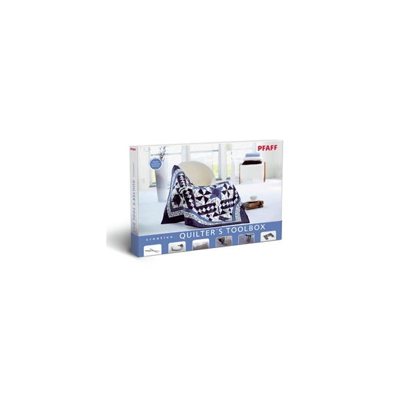 This is the toolbox for quilters and is made to fit Pfaff machines that have long arm and top loading bobbins the quilting kit contains.