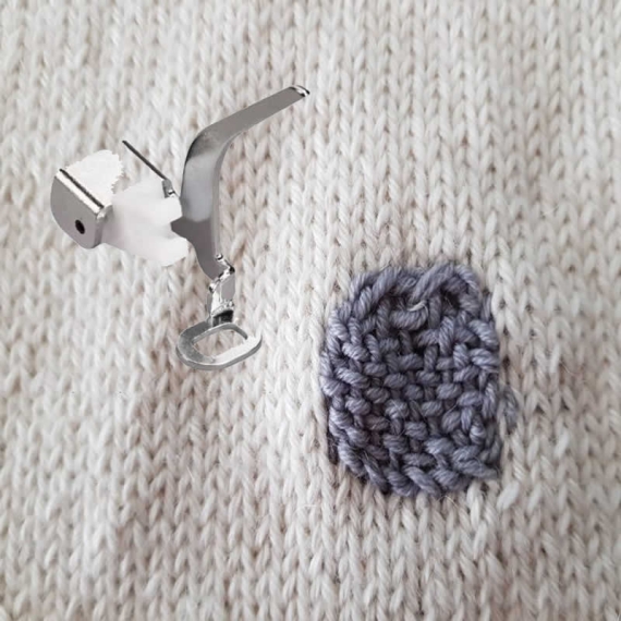 This foot is a true specialist for free-motion sewing and it is best suitable to darn holes and worn areas. Used together with an embroidery hoop, the darning process can be simplified as the hoop stabilises the fabric.