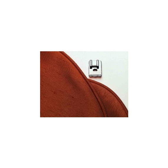 Piping is a great accent for tailored detailing on garments and home decor items, in contrast colours, stripes, etc. The deep grooves in the foot guide the piping cord so it is inserted tightly into the seam line. If ready made piping cord is not available or if you just want to make your own, the piping foot is ideal for the job. Maximum cord size is 5 mm.