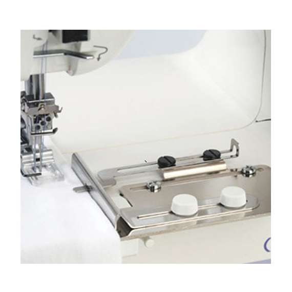 A perfect addition for the Janome CoverPro machines, the hemming guide folds over a consistent width of fabric making it easier to form hems, cuffs and other finished edges. When sewing the hem of a tubular item, such as a skirt, you can press the release button as you near the finish to release the guide and then finish the rest of the hem.