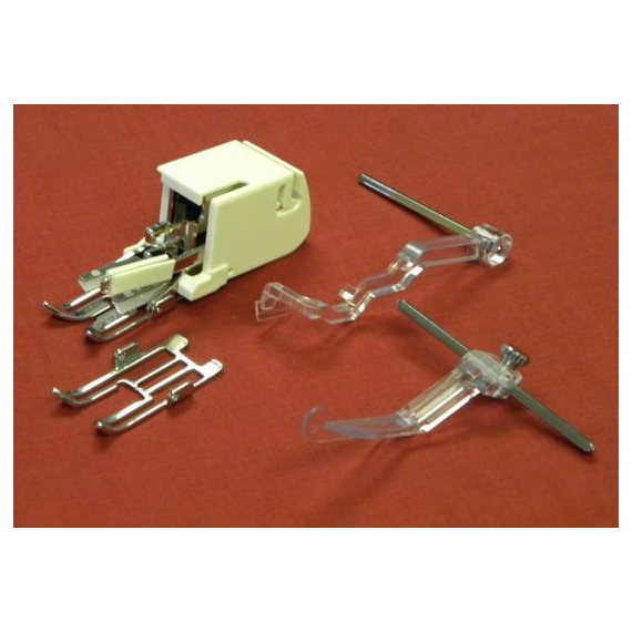 This Janome Convertible Even Feed Foot Set is the latest addition to the Janome range of Even Feed Feet and is designed with convenient features for the Quilter. The set includes a Closed-Toe Even Feed Foot, a Convertible Open-Toe option for extra visibility, a Clip-on Ditch Quilting Guide and an adjustable Left/Right Quilting Guide. The new construction of these feet make this set easier than ever to set up for all those Quilting tasks.