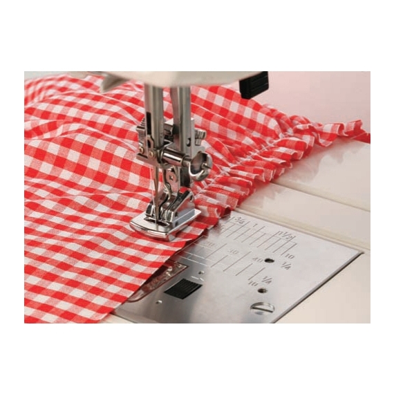 Choose from lots of sewing machine feet such as Janome Gathering Foot Screw on!