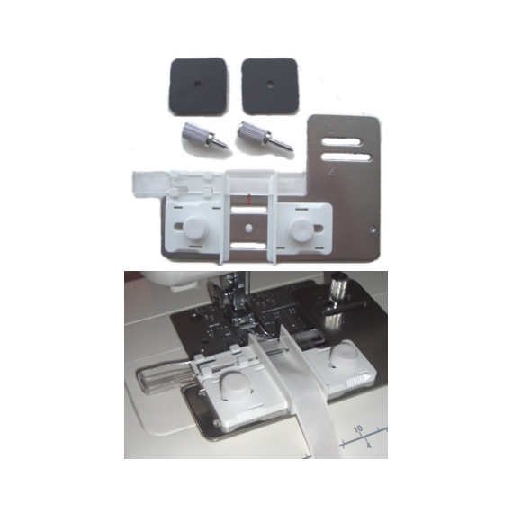 The Ribbon Sewing Guide allows you to create original ribbons by adding decorative stitches and lettering to ribbon up to 25mm (1 inch) wide. Fits all machines that have an attachment hole on or near the needle plate can use this guide. Does not fit machines without an attachment hole such as the Janome MC10000 and MC10001. Janome Ribbon and Tape Sewing Guide.
