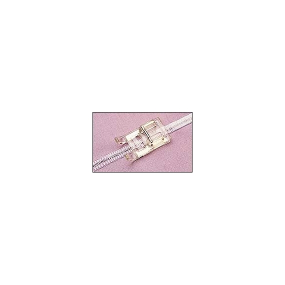 For Janome sewing machines with a top loading spool, the satin stitch foot is for dense zig-zag stitching. Bottom of foot is bevelled for smooth delivery of thread when sewing decorative or satin stitches. Made in clear plastic, it makes it easier to view the stitches as you sew.