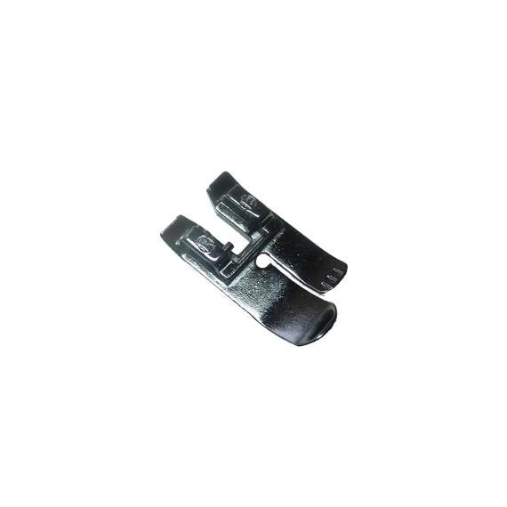 This straight stitch quilting foot is often used on very fine or very heavy fabrics. This particular foot is flat on the underside to provide an even pressure against the feed dogs and it has a round needle hole which offers the benefit of more support around the needle to prevent skipped stitches and puckering. It must be used in a centre needle position.