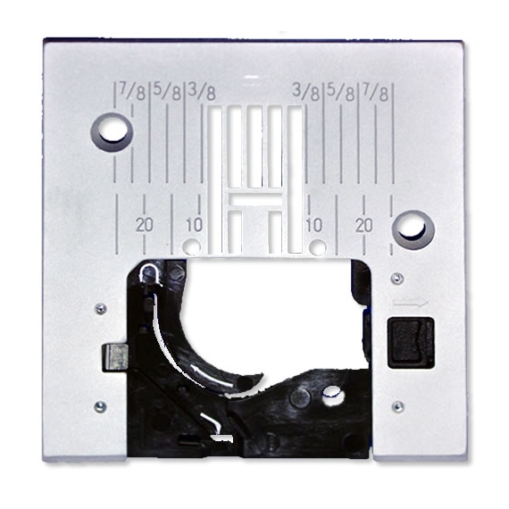 The Pfaff Passport 2.0 straight stitch nnedle plate with inch markings. This comes as a standard fitted to you machine. This is a direct replacement for damaged or lost needle plates. Genuine Pfaff product.