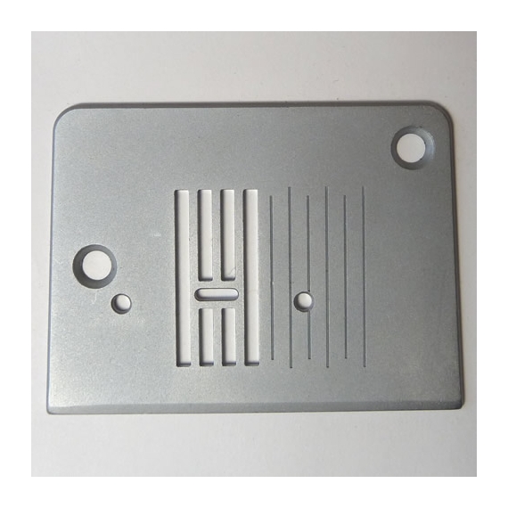 Replacement Needle Plate for the Silver Viscount 25 years series sewing machine range, where the bobbin is loaded from the front. For best stitching results the needle plate must not be damaged in any way near the needle hole.