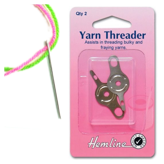 These yarn threaders are double ended with two sizes to help thread bulky or fraying yarns. 2 items per pack.