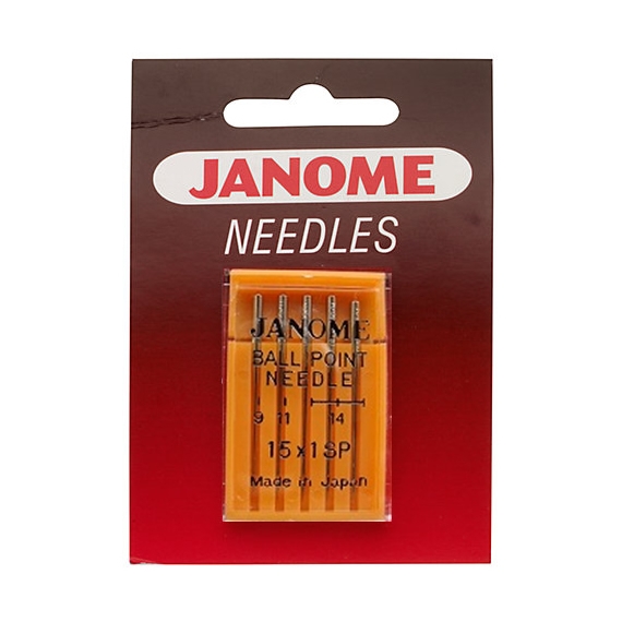 Janome Ball Point Needles are a rounded tipped needle for sewing knitted fabrics.