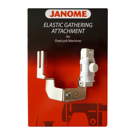 Choose from lots of sewing machine feet such as this elastic attachment made to fit many Janome Overlockers!