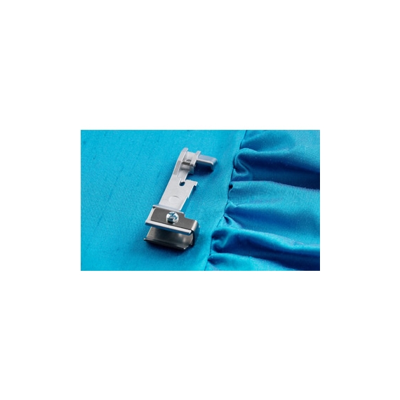 The Gathering Shirring Foot is perfect for simultaneously stitching and gathering two layers of fabric. You can increase the gathering by setting a higher differential feed and adjusting the stitch length. This foot is most suited for gathering when sewing tiered skirts, yokes, cuffs and frills on skirts, etc. Instructions for using the foot are included in the package.